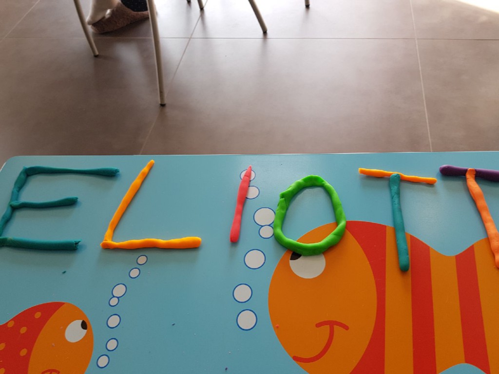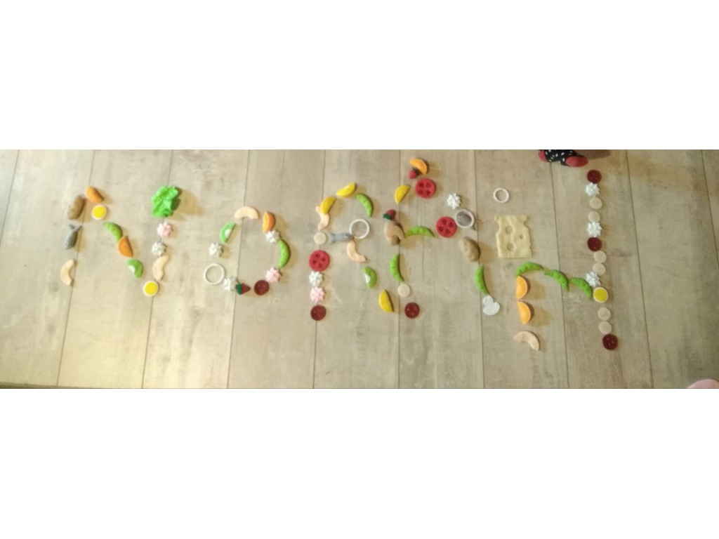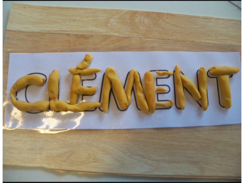 Ecrire la première lettre de son prénom pour les PS et le prénom en entier pour les MS avec de la pâte à modeler ou de la pâte à sel. On peut faire comme sur la photo, avec ou sans modèle, ou en faisant des empreintes sur la pâte à modeler, avec des emporte-pièce... Soyez créatifs les enfants!
