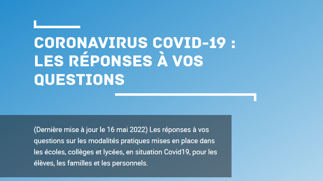 Les questions-réponses concernant le COVID à l'école (MAJ du 12/05/2022)