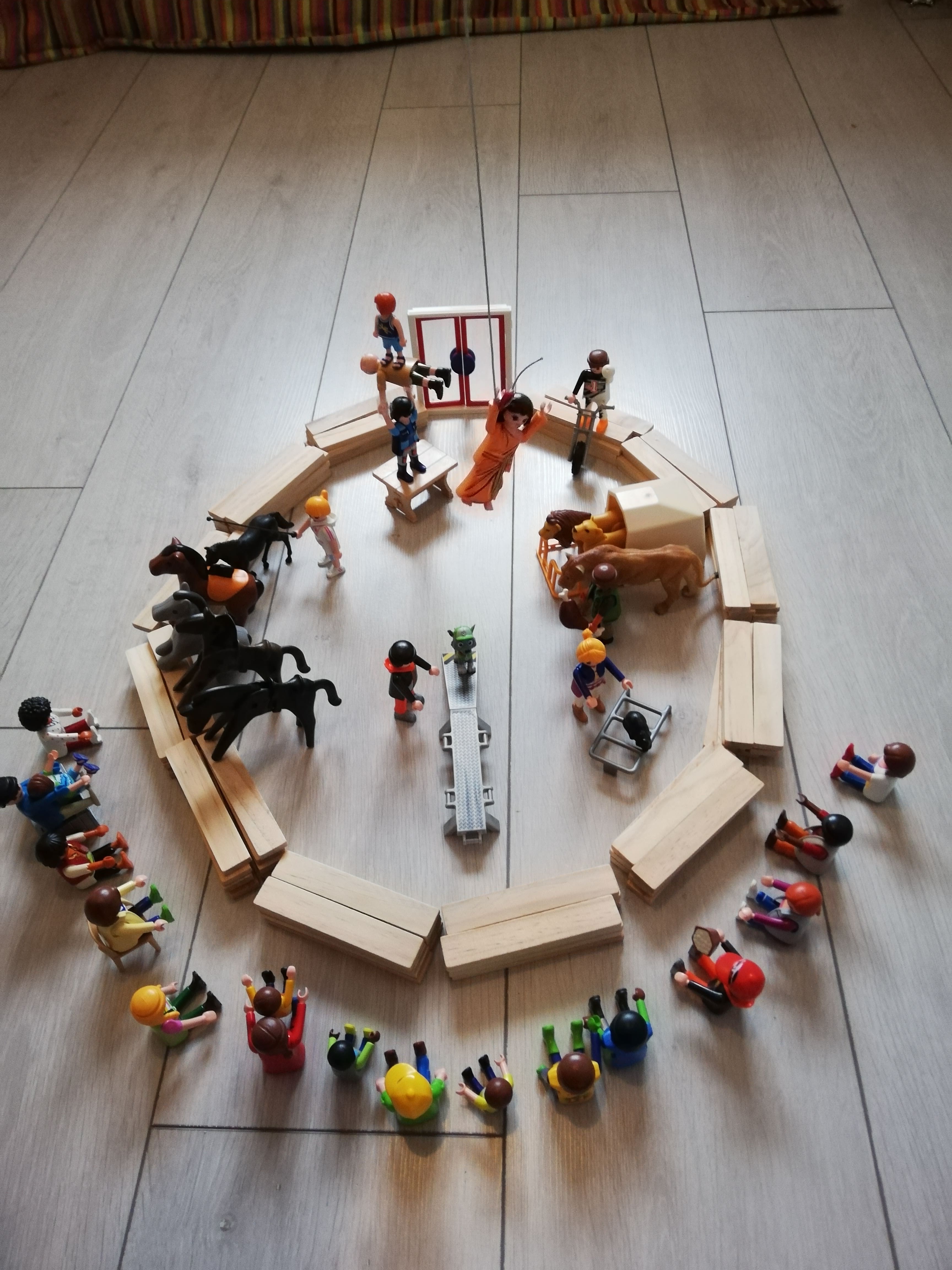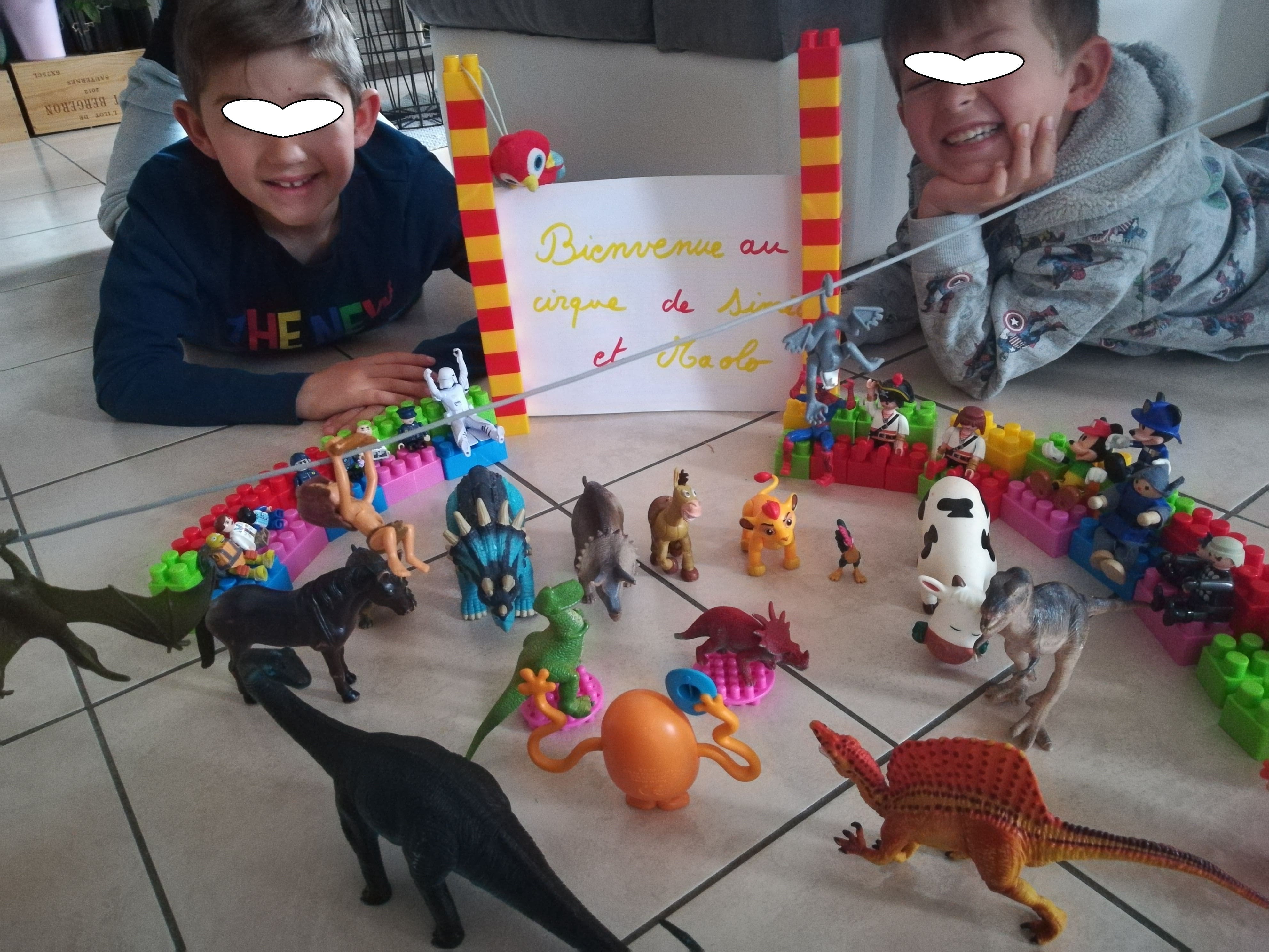 Voilà le cirque des dinosaures que Simeo et Maolo se sont amusés à faire.