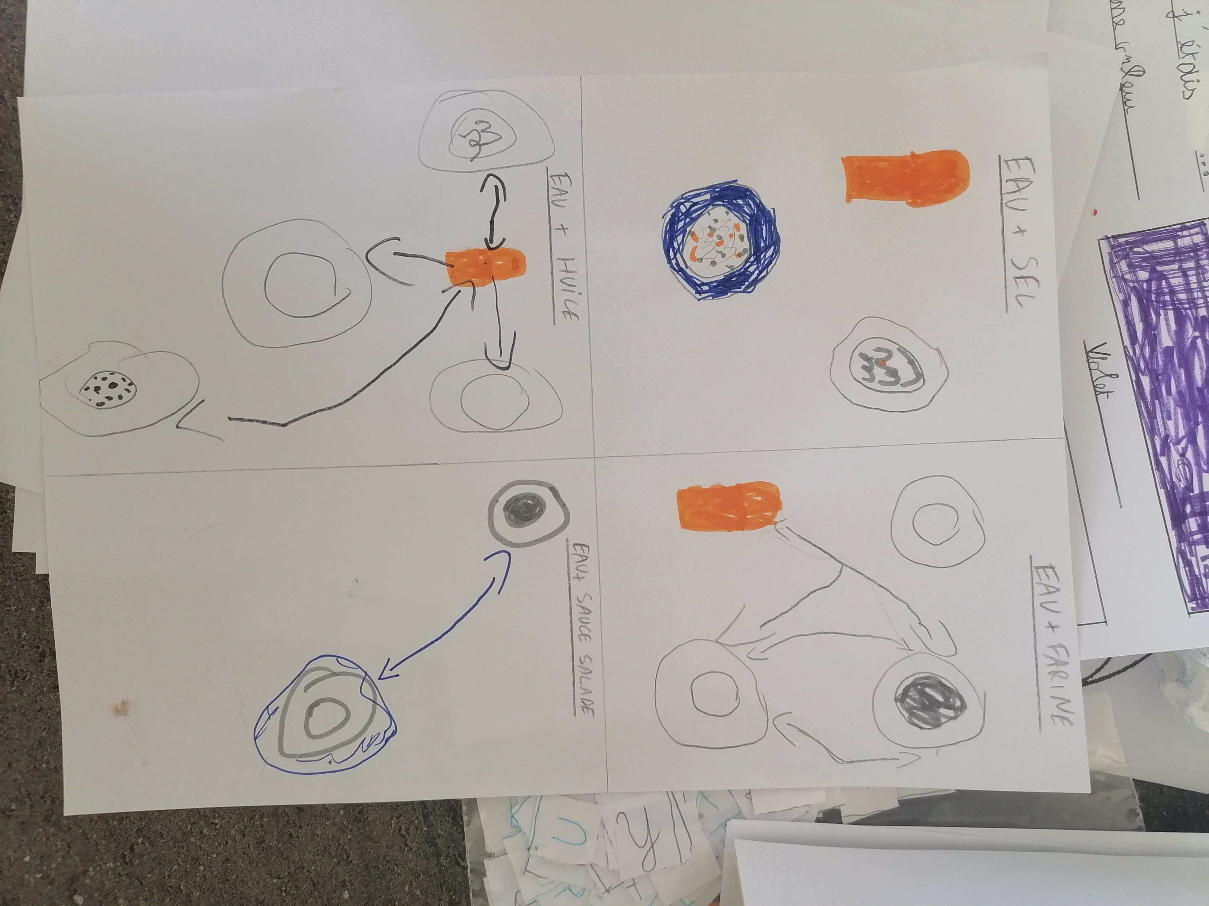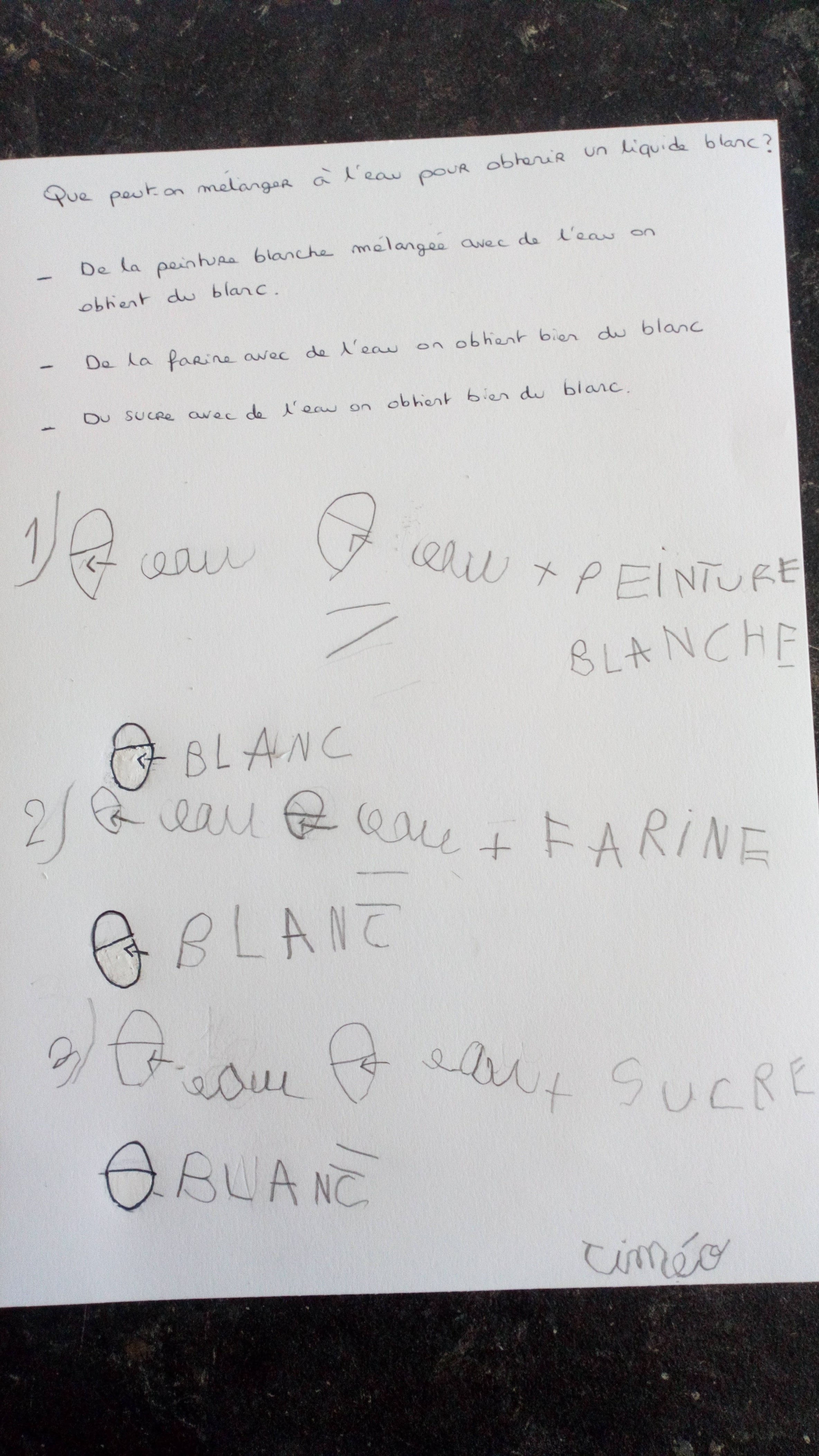 Le lait se mélangeait avec l'eau et on a essayé et ça faisait du blanc.